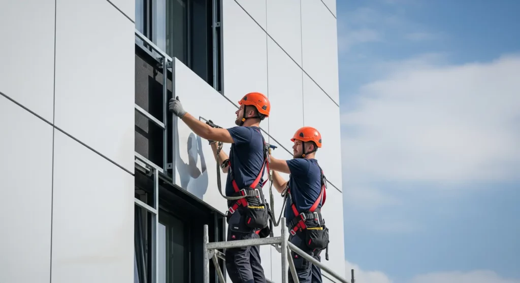 — Устанавливать вентилируемые и невентилируемые фасадные системы (например, из композитных панелей, керамогранита, металла, фиброцементных плит).